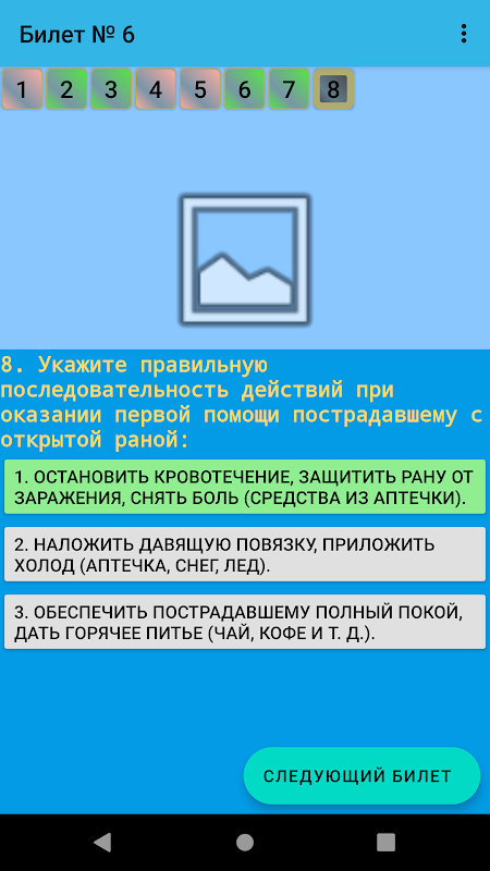 - प्रशिक्षण मोड किसी भी क्रम में टिकटों को हल करना संभव बनाता है, समाधान परिणामों के इतिहास को स्टोर करें (टिकट जो सही ढंग से हल किए गए थे, हरे रंग में हाइलाइट किए गए हैं, जो टिकट सही ढंग से हल किए गए थे, वे लाल रंग में प्रदर्शित होते हैं, जो कि ग्रे में हल नहीं हुए थे) ।