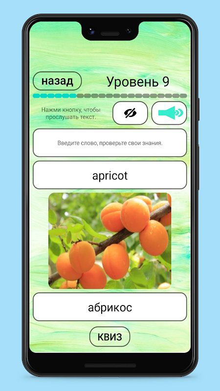 ऐप में शब्दों को सीखने के लिए फ्लैशकार्ड, संदर्भ में शब्दों का उपयोग कैसे किया जाता है, और एक शब्द प्रश्नोत्तरी के उदाहरण शामिल हैं। आप कीबोर्ड से शब्दों को लिखने का अभ्यास कर सकते हैं, जो शब्द आप सीख रहे हैं उन्हें छिपाना या न छिपाना। शब्दों को बेहतर ढंग से याद रखने के लिए रंगीन मेमोरी कार्ड और वॉयस एक्टिंग। एप्लिकेशन में "नोट्स" खंड जोड़ा गया है, इस खंड में आप अपने अध्ययन किए गए शब्दों को अनुवाद और छवियों के साथ जोड़ सकते हैं, या इसे नियमित नोटपैड के रूप में उपयोग कर सकते हैं। नोट को स्क्रीन क्षेत्र से बाएँ या दाएँ खींचकर अनावश्यक नोट हटा दिए जाते हैं। अधिकतम परिणामों के लिए, कई घंटों के अंतराल के साथ दिन में कई बार आवेदन का उपयोग करने की सिफारिश की जाती है। एप्लिकेशन को लगातार अपडेट किया जाएगा और नए शब्दों के साथ अपडेट किया जाएगा। आपकी भाषा सीखने के लिए शुभकामनाएँ।