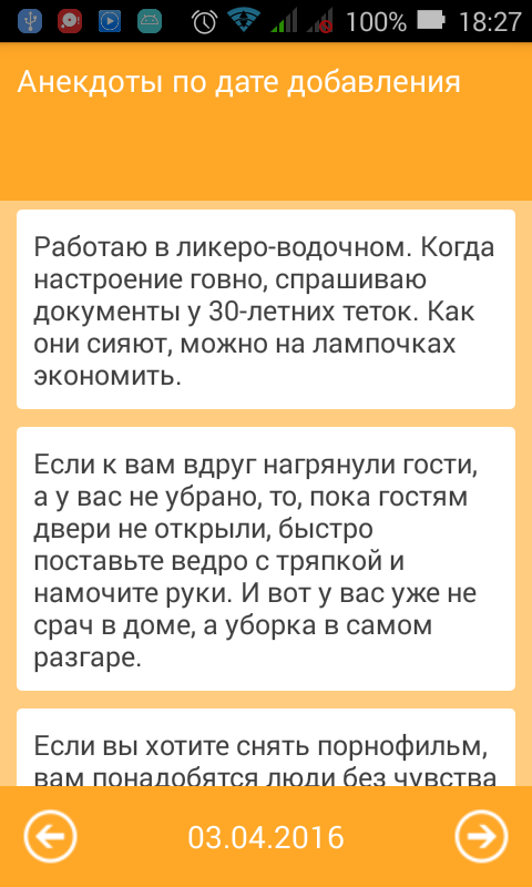 В нашем приложении собраны анекдоты, истории и фразы на любой вкус.