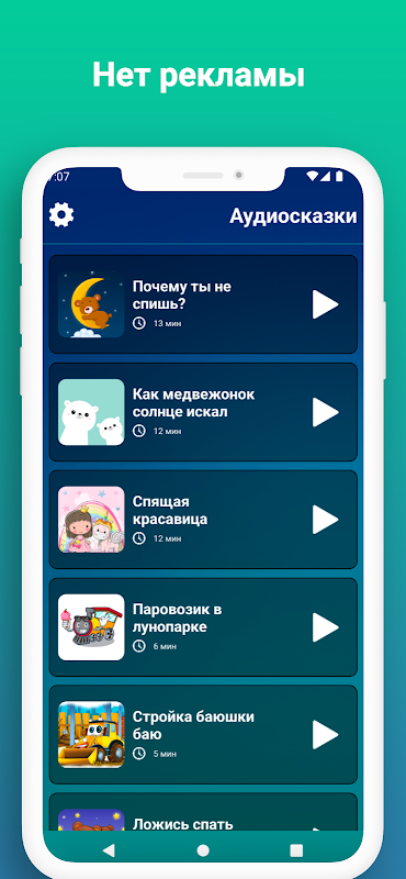 इसके अलावा, ऑडियो टेल्स एप्लिकेशन एक सुविधाजनक खिलाड़ी और उपयोगी कार्यक्षमता से लैस है। आपको यह चिंता करने की ज़रूरत नहीं है कि जब आप अपने फ़ोन की स्क्रीन बंद कर देंगे तो परियों की कहानी समाप्त हो जाएगी - स्क्रीन बंद होने पर भी एप्लिकेशन काम कर सकता है।