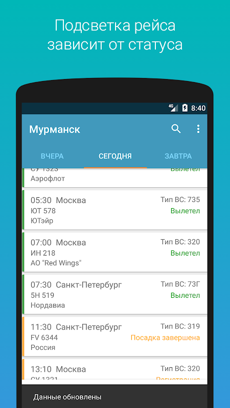 Аэропорт Мурманск - табло, информация о полётах 1.0