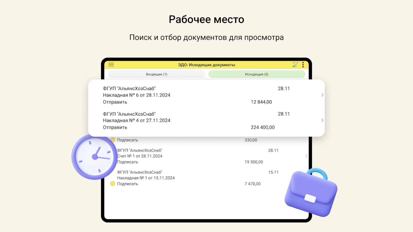 • सुविधाजनक फ़िल्टर का उपयोग करके इनकमिंग और आउटगोइंग इलेक्ट्रॉनिक दस्तावेज़ देखना