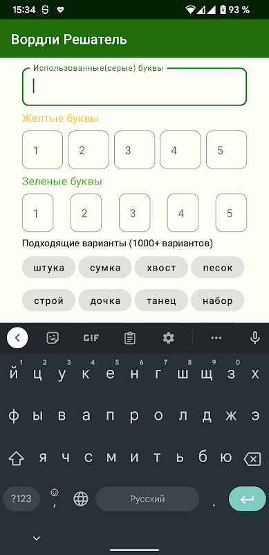 रूसी भाषा के लिए वर्डली कार्यों को हल करने के लिए सहायक