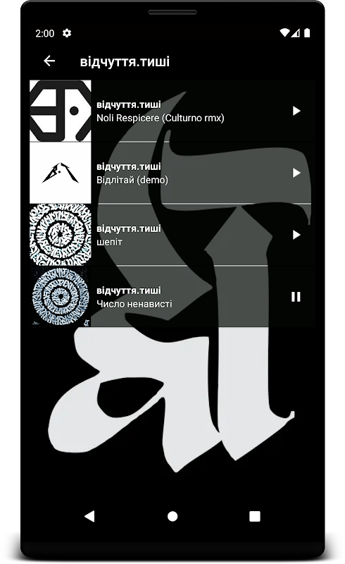 कृपया ध्यान दें कि एप्लिकेशन पूरी तरह से संभावित श्रोताओं को बैंड के काम से परिचित कराने के लिए बनाया गया था, इसलिए गाने डाउनलोड करने की क्षमता लागू नहीं होती है, लेकिन आप उन्हें ऑनलाइन सुन सकते हैं (यूट्यूब संगीत के विपरीत, भले ही स्क्रीन लॉक हो)।