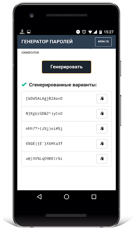 Удобное приложение для генерации паролей настраиваемой длины, содержащих цифры, символы разных регистров, специальные символы. Создавайте надёжные пароли и не беспокойтесь по поводу сохранности ваших аккаунтов.