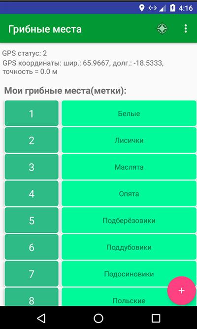 Бесплатное приложение для грибников. Позволяет отметить на карте место где вы нашли грибы чтобы проверить его в следующий раз.