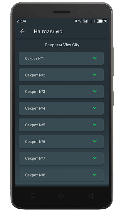 Так же в приложении «ГТА Вай Сити читы» представлено раздел: секреты GTA: Vice City, в котором представлены секреты игры, а также интересные моменты и замечания, которые открываться во время игрового процесса.