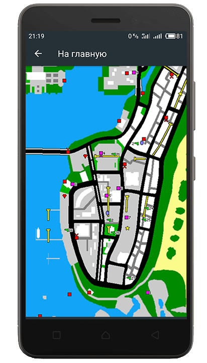 Так же для облегчения игры и поиска нужного оружия брони вещей и еще много чего мы внедрили карту города с описанием. На этой карте для ГТА Вайс Сити, есть много интересного.