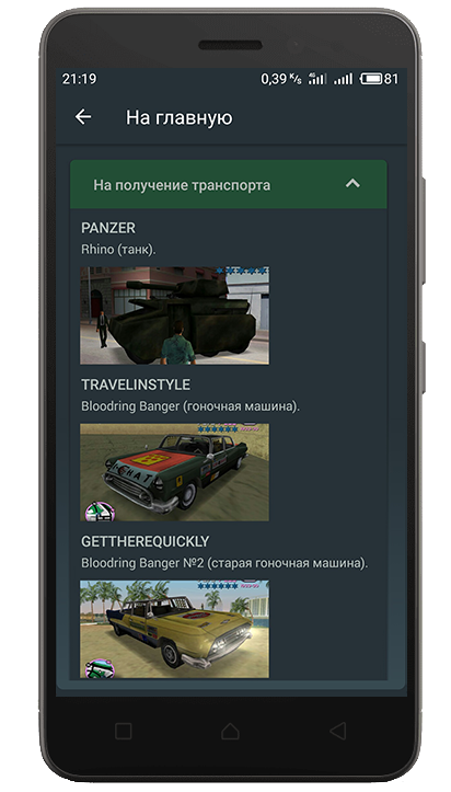 Вам не нужно больше искать где скачать читы на гта вайс сити, они всегда будут у Вас под рукой в вашем смартфоне, в удобном виде.