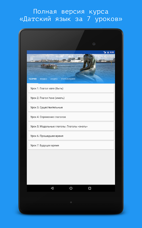 - नि: शुल्क पाठ्यक्रम का पूर्ण संस्करण "7 पाठों में डेनिश"