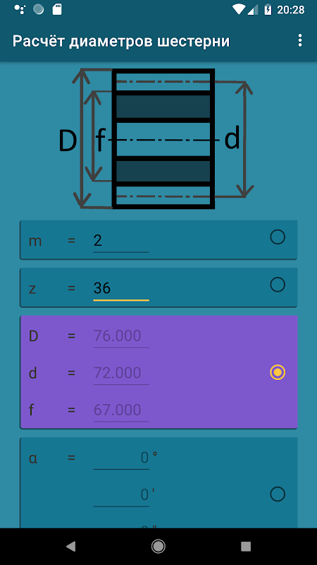 गियर व्यास की सरलीकृत गणना के लिए आवेदन।