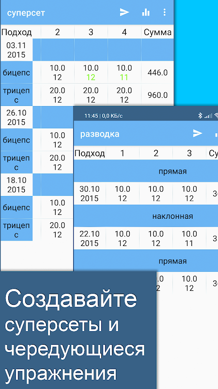 रिकॉर्ड और अपने workouts के परिणामों को स्टोर करने के लिए सुविधाजनक और सरल आवेदन।