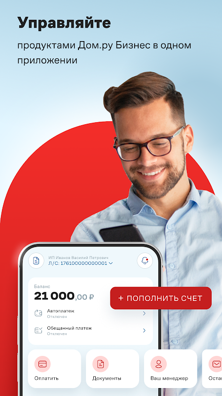 सेवाओं के लिए भुगतान करें, दस्तावेज़ अपलोड करें, टैरिफ बदलें, अतिरिक्त सेवाओं और नई वस्तुओं को कनेक्ट करें - यह सब और बहुत कुछ - DOM.ru व्यवसाय एप्लिकेशन में।