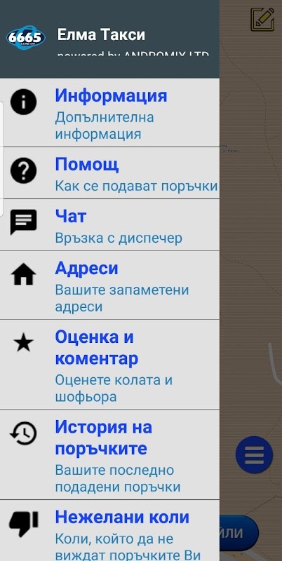 एल्मा टैक्सी का आवेदन - ऑर्डर देने के लिए प्लोवदीव