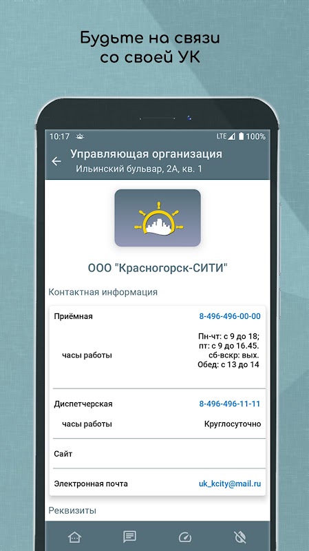 इस मोबाइल एप्लिकेशन में, प्रबंधन कंपनी अपने घरों के निवासियों को विभिन्न सुविधाजनक सेवाएं प्रदान करती है: