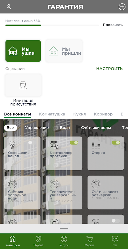 Управлять системой “Умный дом” на базе концепции Интернета вещей (IoT) в вашей квартире из любой точки мира и расширять ее функционал путем заказа дополнительных пакетов и отдельных устройств различных производителей. Гибкая комбинация технологии wi-fi, bluetooth и других протоколов позволит обходиться без центрального контроллера и строить “умный” дом в соответствии с самыми последними технологическими трендами. А это означает не только высокий уровень надежности, безопасности, простоту монтажа и эксплуатации, но и доступный уровень цен на устройства. Удобные сценарии с понятными настройками, оповещения о нештатных ситуациях, управление бытовой техникой и включение в работу сценариев - это лишь малая часть возможностей Умного дома в приложении ЖК Гарантия.
