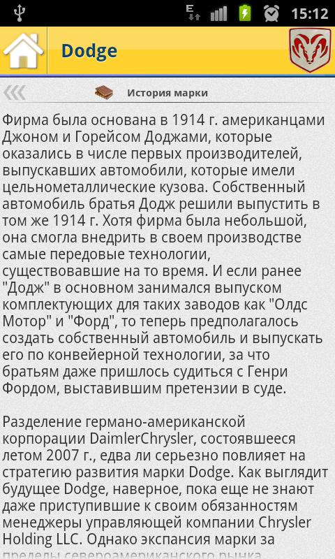 Все автолюбители или просто интересующиеся люди могут почерпнуть много полезной и интересной информации. В приложении собраны истории создания компаний, логотипов и моделей более чем 70 марок автомобилей.