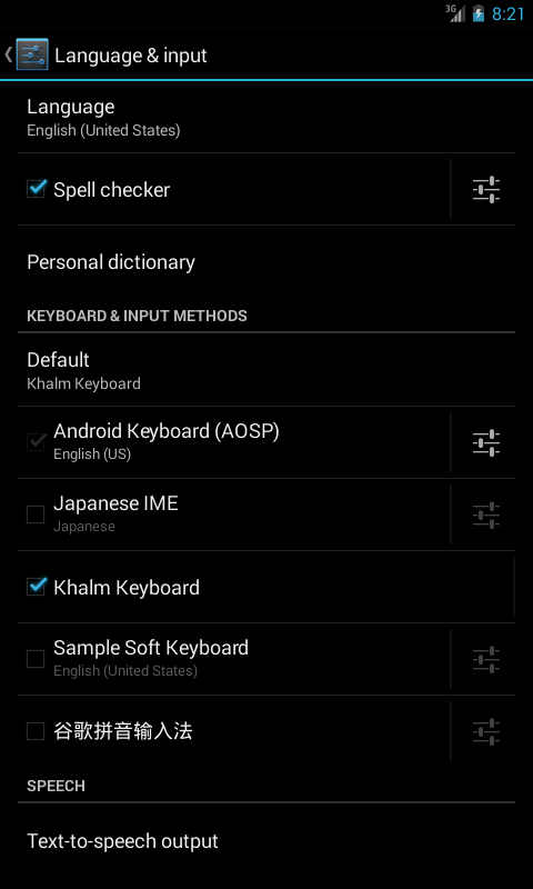 सूची, चुनें कुंजीपटल "Khalm कुंजीपटल" में 4.
