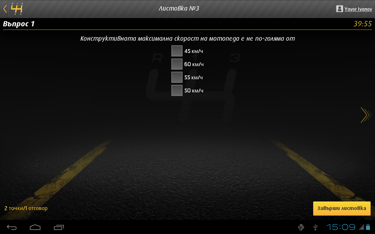 Дизайнът отговаря на нововъдените изсиквания за провеждане на теоритичния изпит чрез таблети. Освен това, дава допълнителна информация за глобите и наказанията при нарушение на правилата и закона за движение по пътищата.