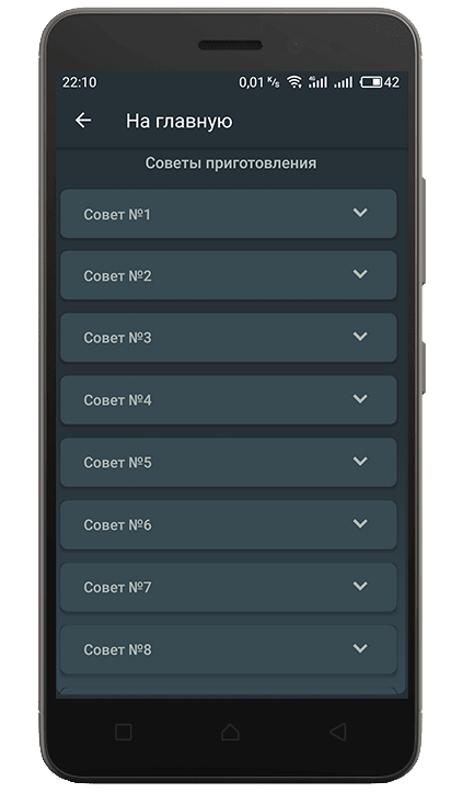 Так же есть раздел «Советы», в котором Вы узнаете секреты приготовления капкейков, которые Вы до этого возможно не знали. Они помогут Вам в выпекании и украшении кремом этого блюда, с этими советами Ваши капкейки всегда будут аппетитными и вкусными.