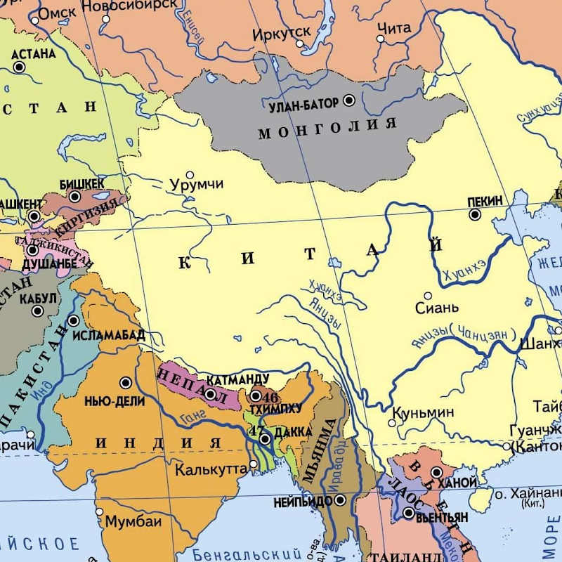 world map 2023 with countries, capitals, cities and rivers.