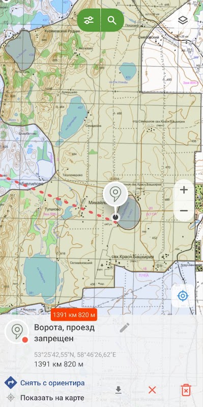 • दिशाओं और दूरियों के साथ एक मार्कर पर नेविगेशन - आपको हमेशा वह स्थान मिलेगा जहां आपको जंगल में जाने की आवश्यकता है।