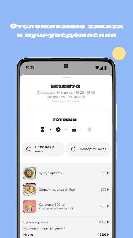 कैफ़े ज़वत्रा, कैट से डिलीवरी के लिए सुविधाजनक एप्लिकेशन