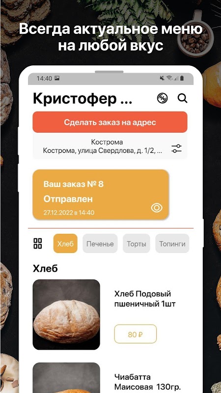 हम डेसर्ट, सलाद, तैयार भोजन, पेस्ट्री, ब्रेड पेश करते हैं। आप यह सब हमारे कैफे या ऑर्डर डिलीवरी में खरीद सकते हैं।