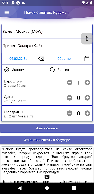 Kuf.aero और flightstats.com के डेटा के आधार पर कुरुमोच हवाई अड्डे (समारा और तोगलीपट्टी) के लिए आधिकारिक ऐप नहीं है