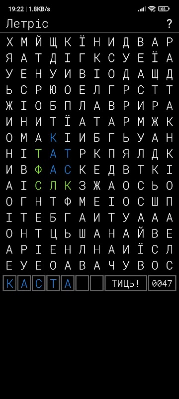 लेट्रिस एक दैनिक पहेली है। हर दिन आपको बेतरतीब ढंग से चुने गए 180 अक्षरों का एक सेट मिलता है। आपका काम 3 से 7 अक्षरों के बीच जितने संभव हो उतने शब्दों को खोजना है।