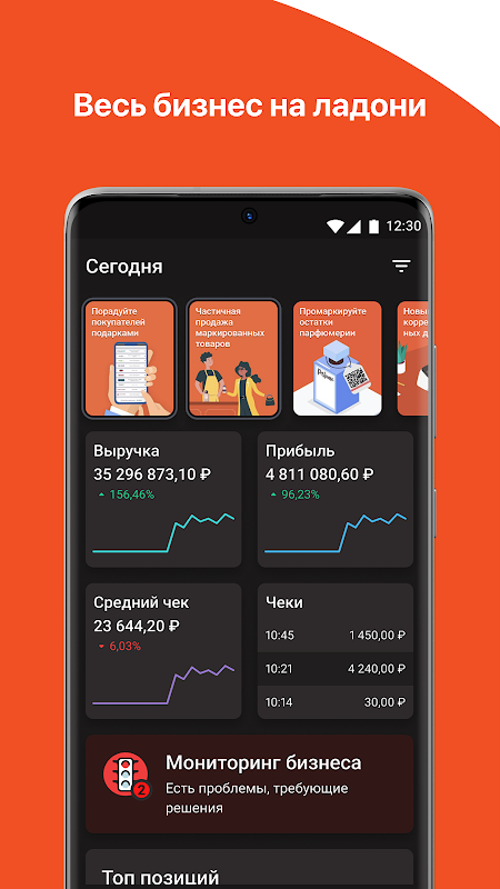 एंड्रॉइड पर एप्लिकेशन में राजस्व, बिक्री अनुसूची और आपके आउटलेट की जांच।