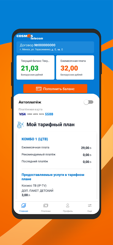 COSMOS टेलीकॉम ग्राहकों के लिए व्यक्तिगत खाता। अपनी सेवाओं को नियंत्रण में रखें!