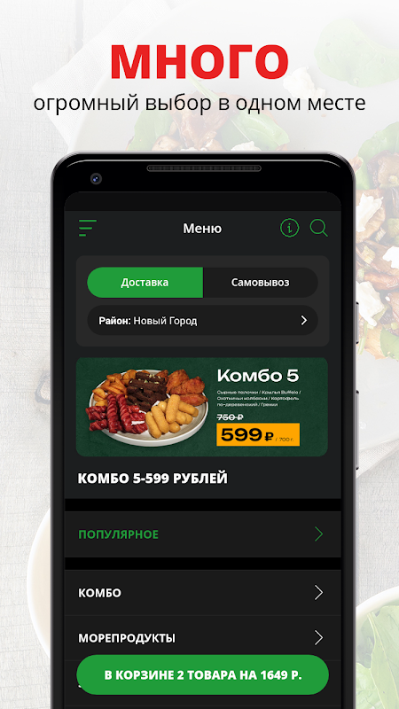 खाना ऑर्डर करने के लिए सुविधाजनक एप्लिकेशन का उपयोग करें "म्यूनिख | नबेरेज़्नी चेल्नी"।