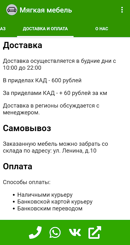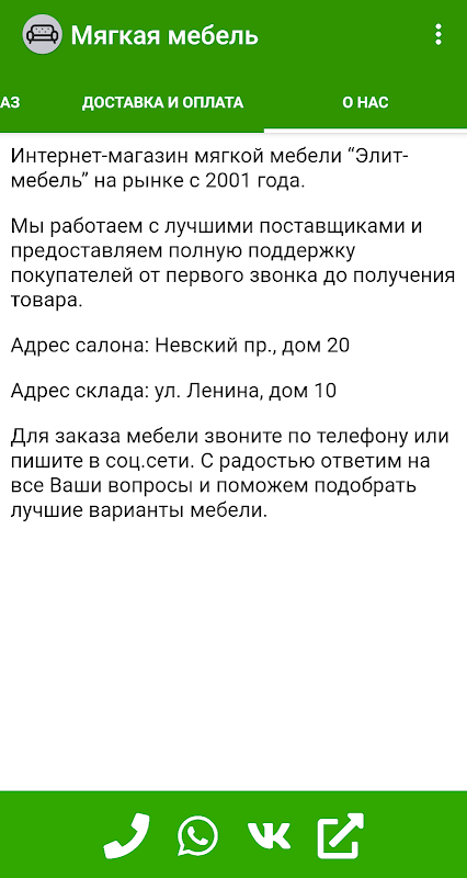 असबाबवाला फ़र्नीचर स्टोर एप्लिकेशन का एक उदाहरण
