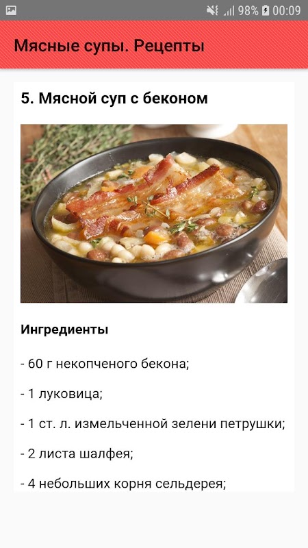 Рецепты мясных супов с говядиной, с фрикадельками, курицей и беконом.