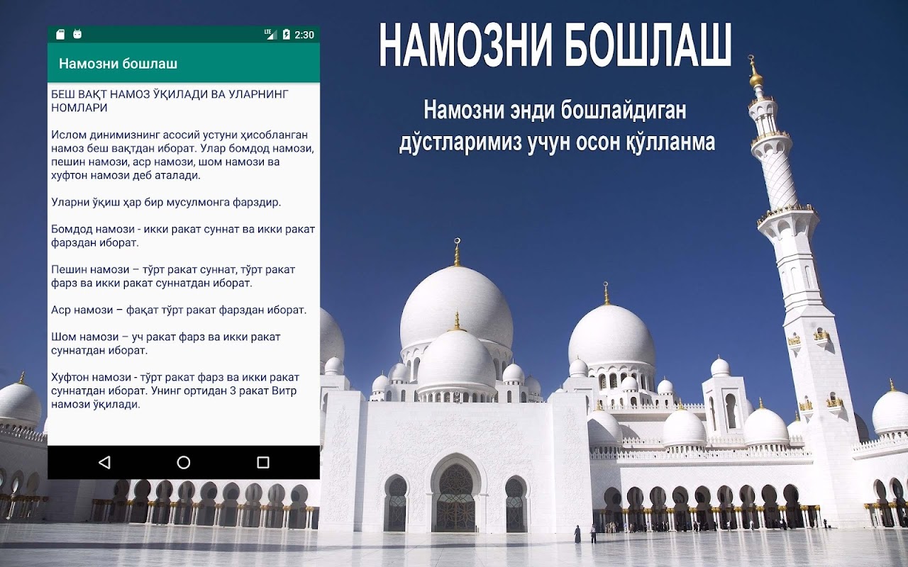 इस्लोम दीनी उस्तूनी बो'लगन नमोझनी बोशलाश दस्तूरी। नमोझ किटोबी