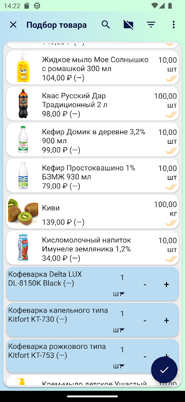 - कई प्रकार की मौजूदा कीमतों के साथ माल की सूची (थोक, छोटे थोक, आदि)
