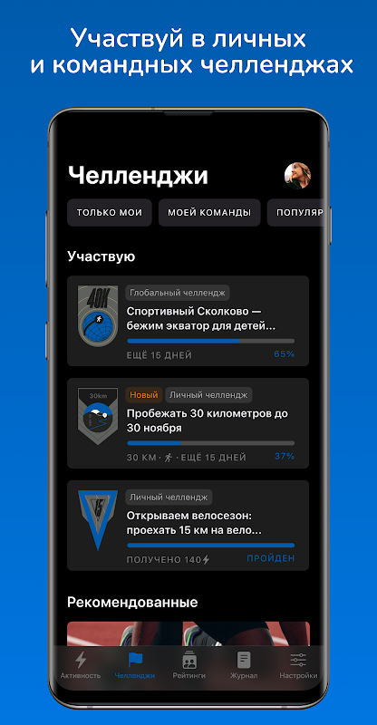 Командные и персональные челленджи на любой вкус, система уведомлений и поддержка. Каждый день вы найдёте для себя что-то новое.