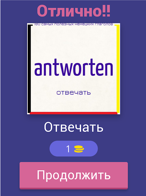 Приложение "Немецкие Глаголы ТОП-180" - увлекательное обучающее приложение, в игровой форме изучите все основные глаголы немецкого языка.