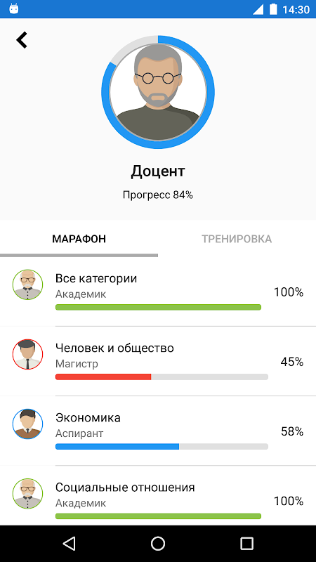 प्रश्नों को कठिनाई स्तर द्वारा वितरित किया जाता है। बुनियादी स्तर समाज के प्रमुख क्षेत्रों और पहलुओं को प्रभावित करते हैं, जो आपको सामाजिक विज्ञान का एक सच्चा पारखी बनने की अनुमति देगा। गहराई से स्तर आपको सामाजिक विज्ञान के क्षेत्र में एक वास्तविक विशेषज्ञ की तरह महसूस करने का अवसर प्रदान करेगा, क्योंकि आपको अध्ययन किए जा रहे विषय के गहन ज्ञान की आवश्यकता होगी।