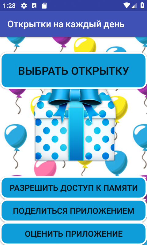 कृपया ध्यान दें कि आवेदन में कैलेंडर, पेशेवर छुट्टियों, साथ ही जन्मदिन की बधाई के लिए कार्ड नहीं हैं।