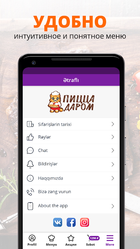 हमारे साथ सब कुछ बहुत स्वादिष्ट है, और सबसे महत्वपूर्ण बात यह है कि सस्ती कीमत पर। वर्गीकरण में सलाद, स्नैक्स, वोक नूडल्स, मैक्सिकन भोजन और पेय भी शामिल हैं।