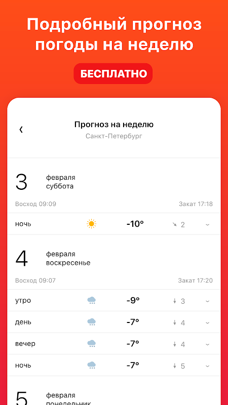 नि: शुल्क उपयोगकर्ता के अनुकूल Pogoda1 से अगले सप्ताह के लिए एक मौसम पूर्वानुमान के साथ आवेदन