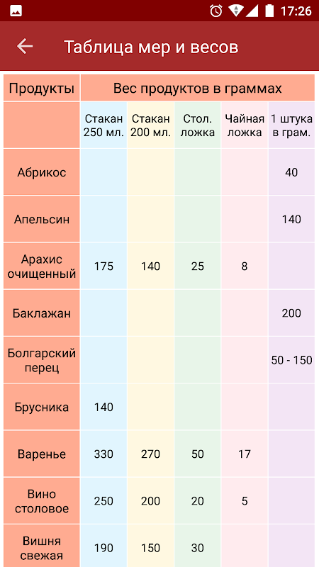 खरीदारी की सूची, वजन और माप की मेज, खाना पकाने के समय की तालिका: तुम भी अतिरिक्त सुविधाओं का उपयोग कर सकते हैं।