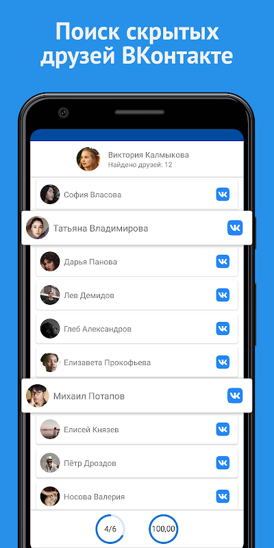 नोट: कोई भी एप्लिकेशन आपको 100% परिणाम नहीं देगा, क्योंकि VKontakte सामाजिक नेटवर्क छिपे हुए मित्रों को खुली पहुँच प्रदान नहीं करता है।