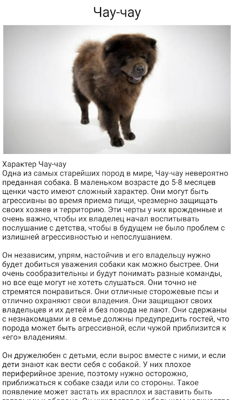 Эта программа в первую очередь пригодится тем, кто только собирается завести четвероногого друга. Очень важно перед принятием такого важного решения максимально изучить вопрос, определиться с множеством таких факторов, как размер питомца, его характер, способностью учиться и особенностями ухода. Мы не претендуем на полное описание всех существующих пород. В этом программе содержится описание более 160 собак, от очень больших псов до самых миниатюрных песиков.