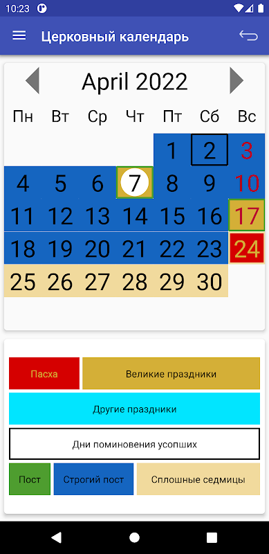 यह छोटा आवेदन आपको 2022-2026 में मुख्य रूढ़िवादी छुट्टियों और उपवासों की तारीखों के बारे में सूचित करेगा और आपको एक अधिसूचना के माध्यम से इन घटनाओं की याद दिलाएगा।
