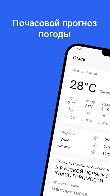 ✅ आवेदन में मौसम की पूरी जानकारी होती है: प्रति घंटा मौसम पूर्वानुमान, दैनिक मौसम पूर्वानुमान, अलर्ट।