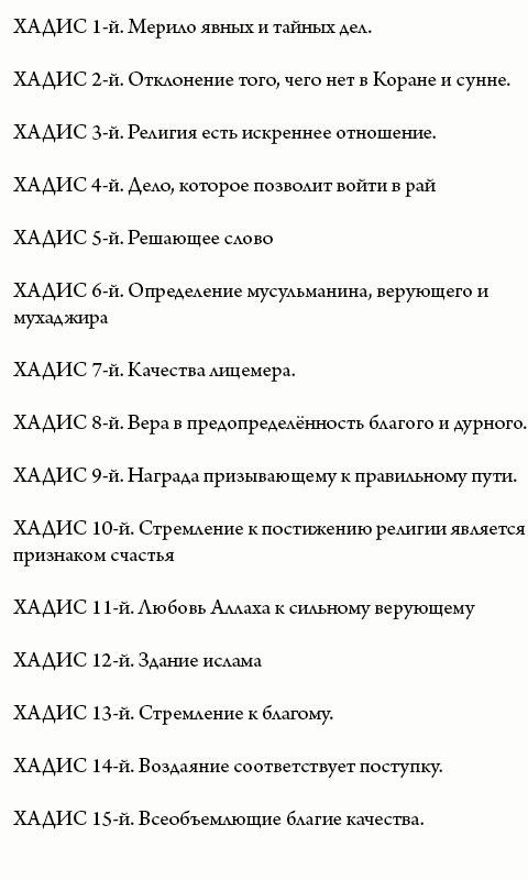 प्रिय पाठक, किताब को आप अपने हाथ में पकड़ है, पिछली सदी, शेख अब्द अल रहमान अल Sa'di के प्रमुख वैज्ञानिक ने लिखा है। माल इसके लिए चयनित एक लेखक के रूप में सेवा की है और धर्म के विभिन्न मामलों में संक्षिप्त हदीसों अपनी टिप्पणी के साथ सुसज्जित है। सबसे पहले, शेख अब्द अल रहमान अल Sa'di हदीसों कि ईमानदार इरादे के लिए जरूरत की बात ओर जाता है और पैगंबर sallallaahu alaihi वा sallam के बाद, क्योंकि इस मामले के बिना अल्लाह के दास स्वीकार नहीं किया जाएगा। उसके बाद, शेख हदीस, जो आयोग और प्रार्थना, जकात, उपवास और हज के लिए आवश्यक शर्तों की ऐसी विरासत कानून, अन्याय का परिणाम है, सारे सपने के साथ नहीं है कि जैसे मुद्दों की एक किस्म के बारे में ahadith पर परिणाम और टिप्पणियों बात करते हैं, और उसके बाद के एक विश्लेषण करने के लिए आय , pod¬derzhaniya रिश्तेदारी, सड़क पर और इतने पर व्यवहार के नियमों। तथ्य यह है कि हदीस पर शेख कमेंटरी उन्हें सरल प्रेरित है और यह समझने में आसान है के बावजूद, वे तुम्हें पैगंबर के शब्दों की महानता अनुभव करने की अनुमति sallallaahu alaihi वा sallam।