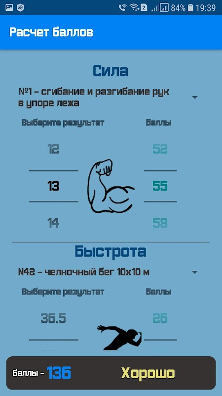 मैनुअल के अनुसार अभ्यास के परिणाम के अनुसार अंक की संख्या का पता लगाएं (शारीरिक प्रशिक्षण अभ्यास के प्रदर्शन के लिए स्कोरिंग की तालिका)।